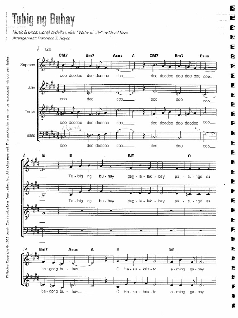 Tubig ng buhay music sheet. Save Save Tubig Ng Buhay For Later. 2 Tubig Ng Buhay - Page 3 of 8 3 Tubig Ng Buhay - Page 4 of 8 4 Tubig Ng Buhay -. Song Title Tubig ng Buhay Lyrics and Chords Music and lyrics by Lionel Valdellon Album.