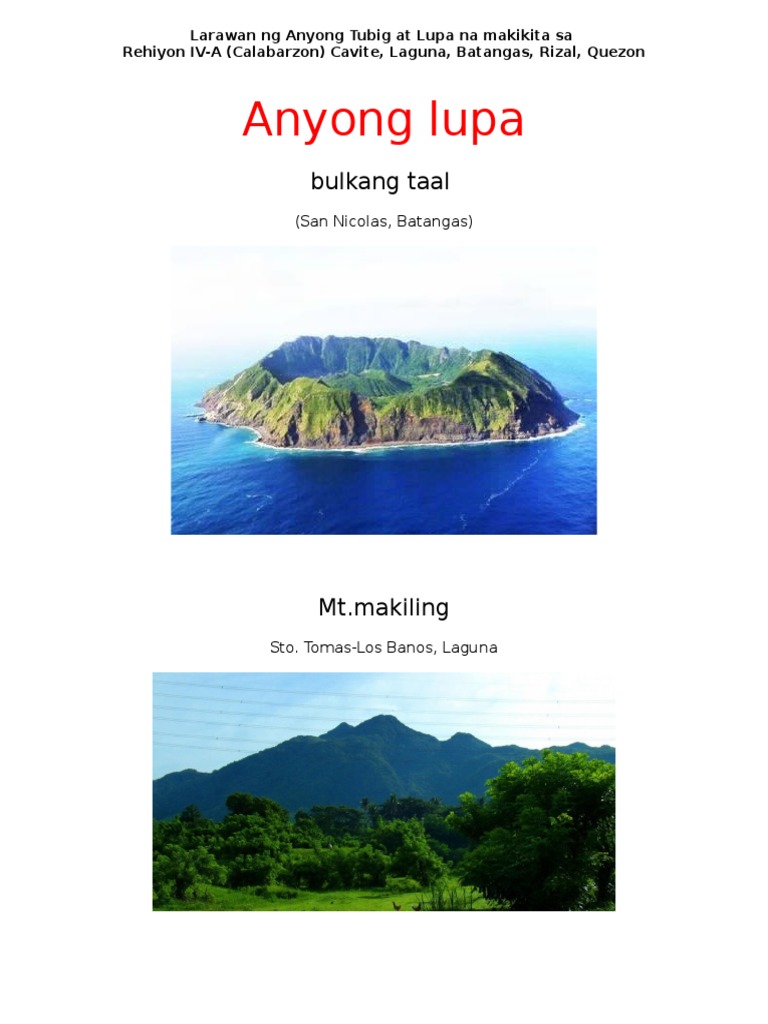 Rehiyon Iv A Calabarzon Anyong Tubig At Anyong Lupa Pdf