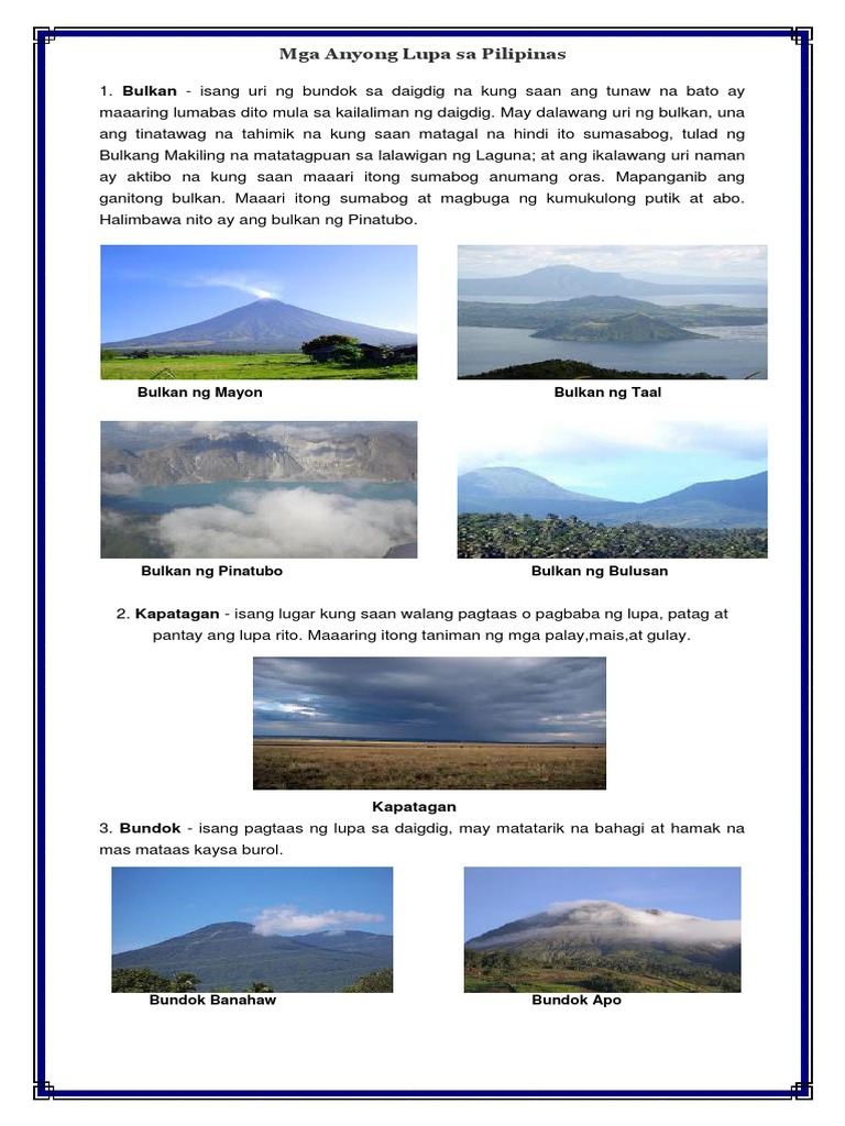 Mga Anyong Lupa Sa Pilipinas Pdf